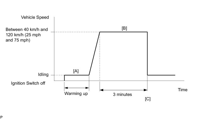 - Drive the vehicle at a constant speed between 40 and 120 km/h (25 and 75 mph) for 3 minutes [B].