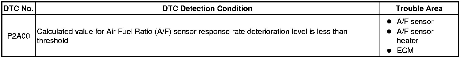 - DTC P2A00 may be also set, when the air-fuel ratio is stuck rich or lean.