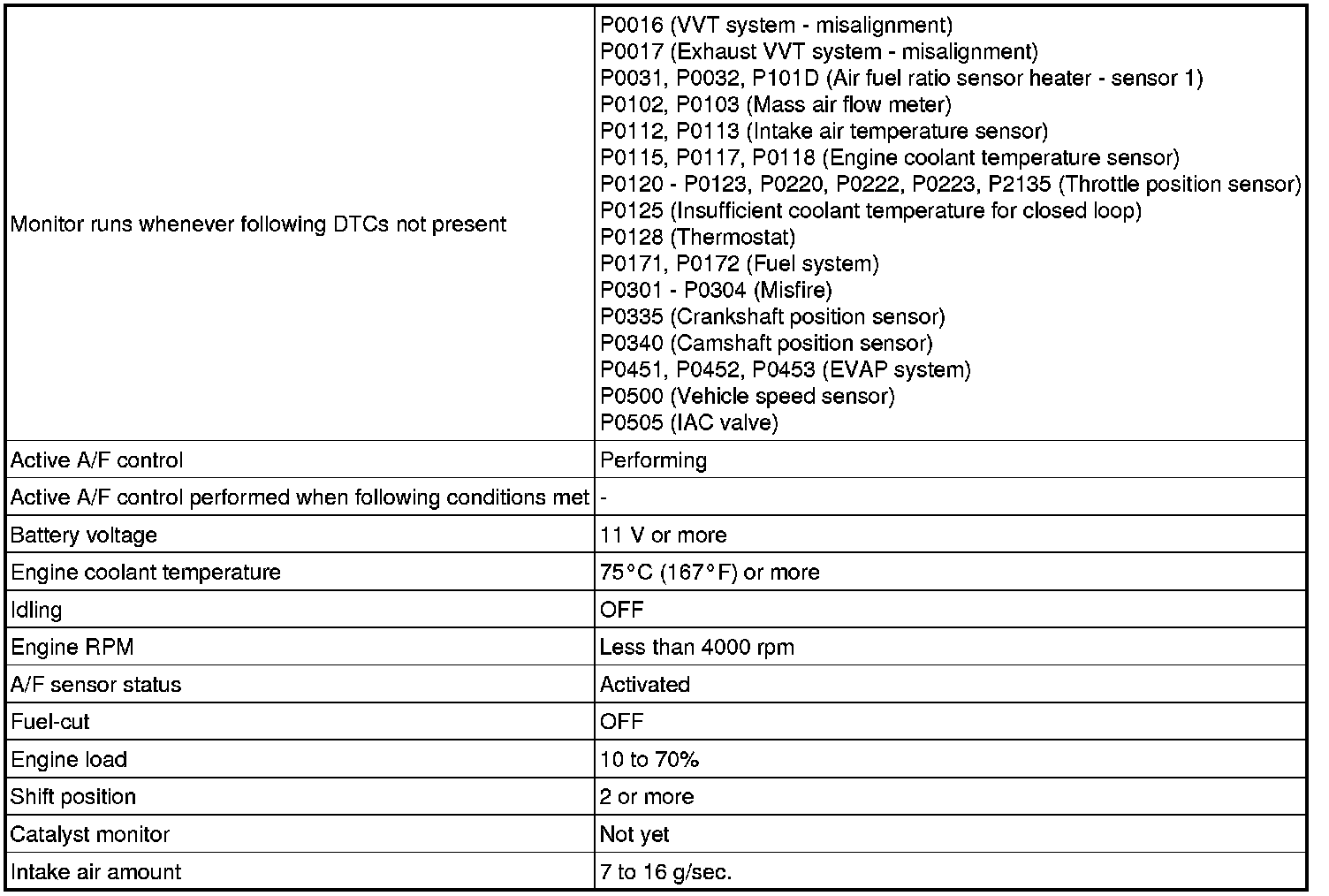 - If the values indicated on the Techstream do not change, perform READINESS MONITOR DRIVE PATTERN for the A/F sensor and heated oxygen sensor Monitors, Trips, Drive Cycles and Readiness Codes.
