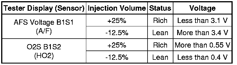 - The Control the Injection Volume for A/F sensor operation lowers the fuel injection volume by 12.5% or increases the injection volume by 25%.