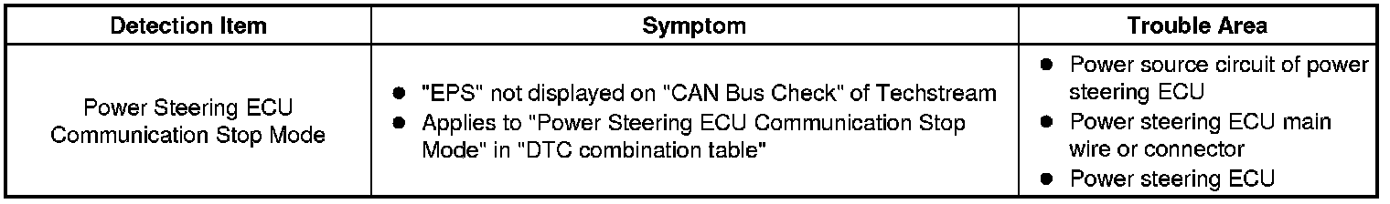 CAN COMMUNICATION: CAN COMMUNICATION SYSTEM: Power Steering ECU Communication Stop Mode
