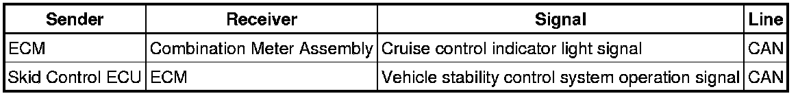 * The ECM illuminates the cruise control indicator light in the combination meter assembly when it receives the cruise control main switch on signal.