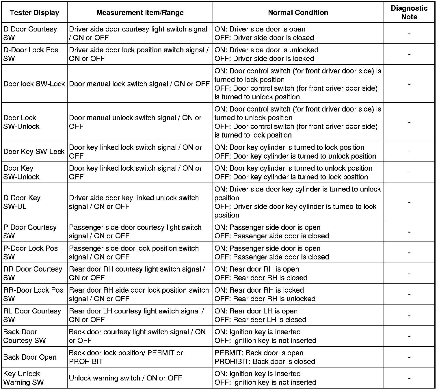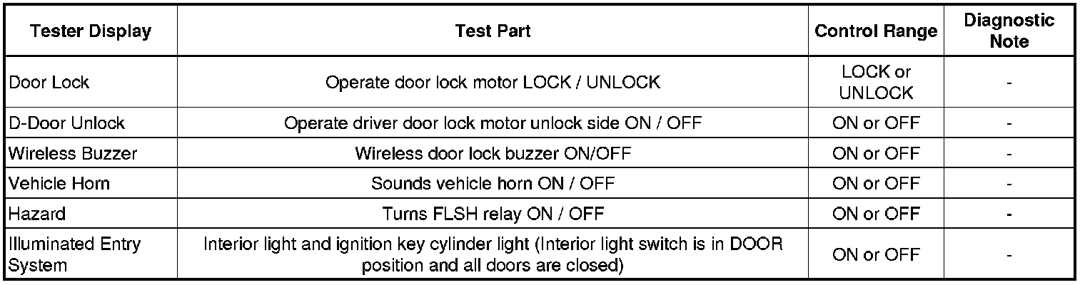 DOOR LOCK: WIRELESS DOOR LOCK CONTROL SYSTEM: DATA LIST / ACTIVE TEST