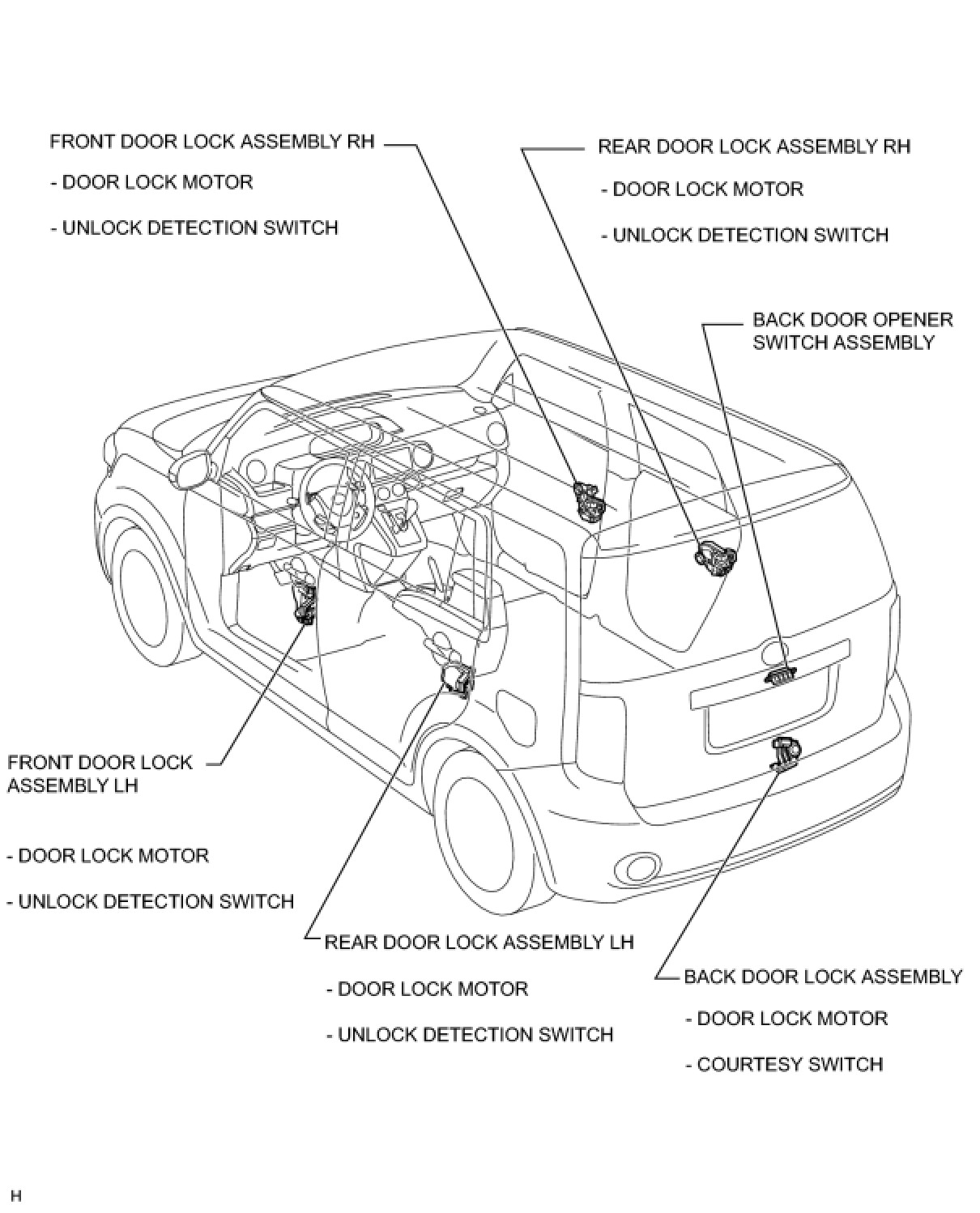 DOOR LOCK: POWER DOOR LOCK CONTROL SYSTEM: PARTS LOCATION
