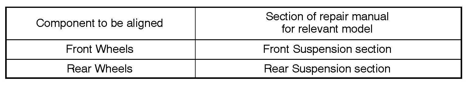 HINT: Correct procedures and special tools are required for alignment. Always follow the directions given in the repair manual for the relevant model year during alignment and in section DI of this section.