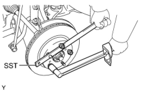 (b) Using SST to hold the disc, tighten the disc with the 5 hub nuts.