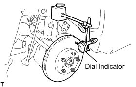(c) Using a dial indicator, measure the disc runout 10 mm (0.394 in.) away from the outer edge of the front disc.