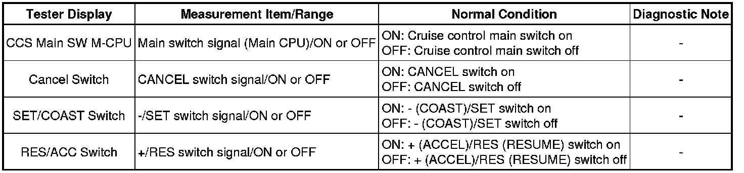 CRUISE CONTROL: CRUISE CONTROL SYSTEM: Cruise Control Switch Circuit