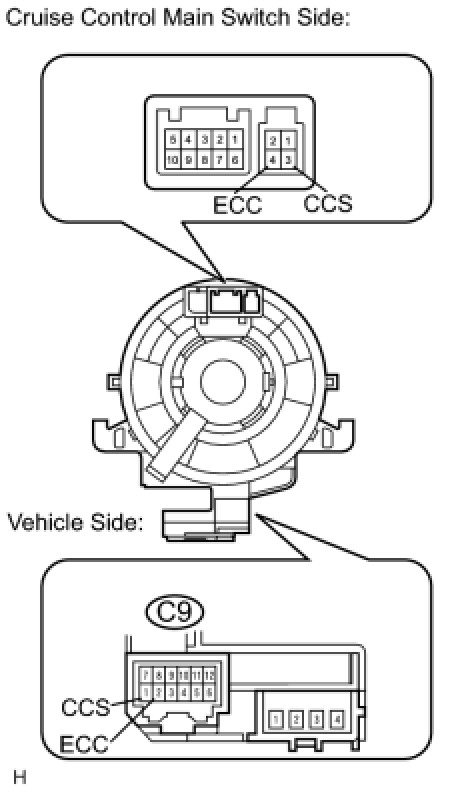 3. CHECK HARNESS AND CONNECTOR (CRUISE CONTROL MAIN SWITCH - SPIRAL CABLE)