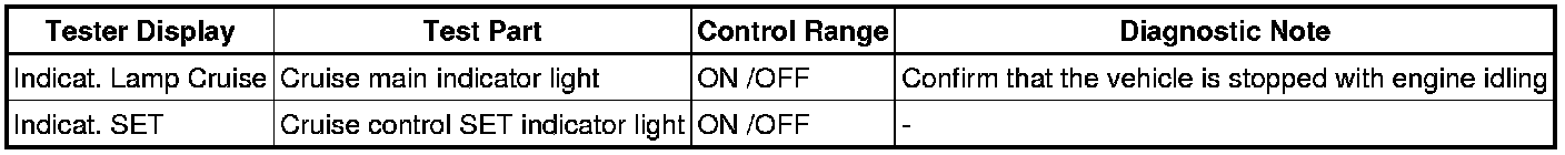 CRUISE CONTROL: CRUISE CONTROL SYSTEM: DATA LIST / ACTIVE TEST