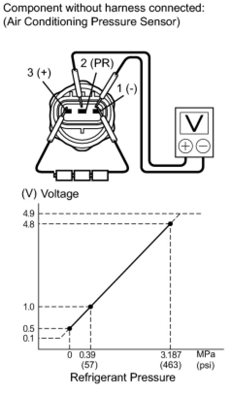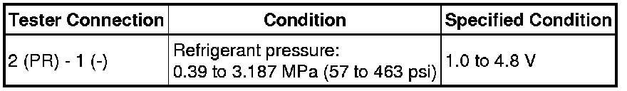 If the result is not as specified, replace the air conditioning pressure sensor.