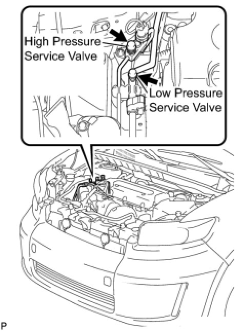 When the compressor is off: approximately 392 to 588 kPa (4 to 6 kgf*cm2, 57 to 85 psi)