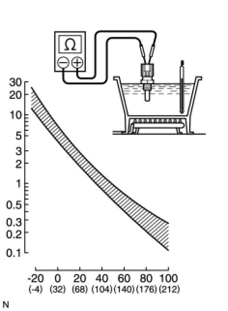 When checking the engine coolant temperature sensor in the water, keep the terminals dry. After the check, wipe the sensor dry.
