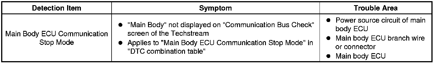 CAN COMMUNICATION: CAN COMMUNICATION SYSTEM: Main Body ECU Communication Stop Mode