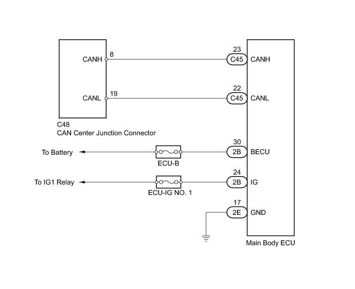 1. CHECK CAN BUS LINE FOR DISCONNECTION (MAIN BODY ECU BRANCH WIRE)