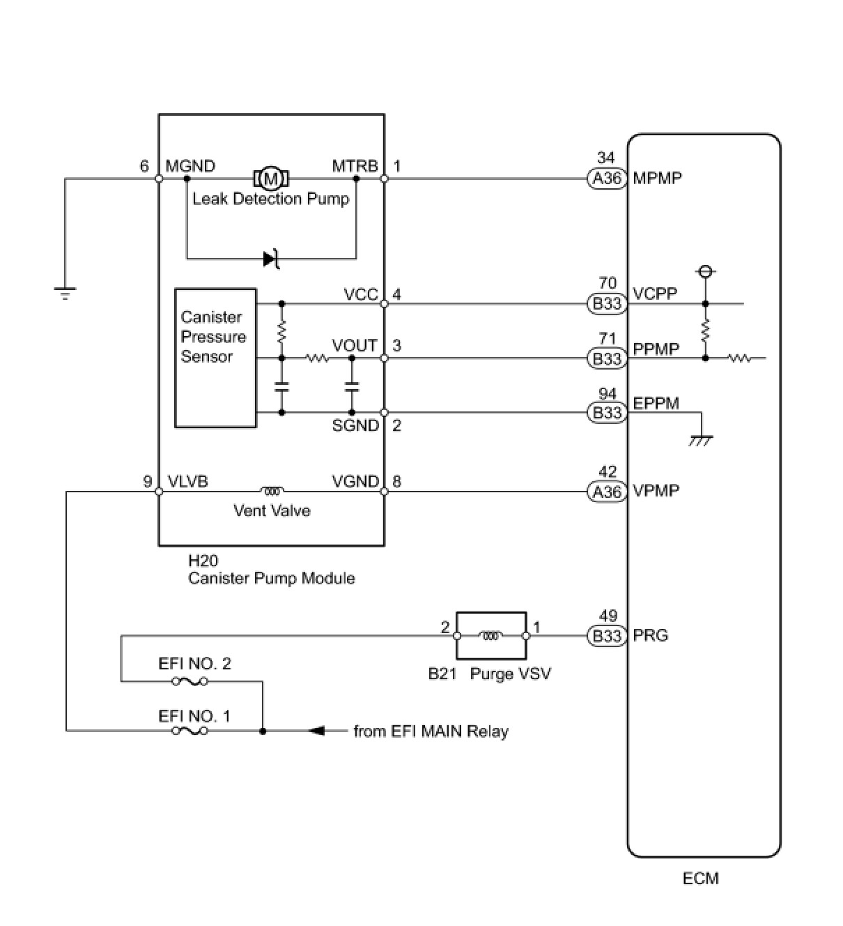 B -- INSPECT CANISTER PUMP MODULE (POWER SOURCE FOR VENT VALVE)