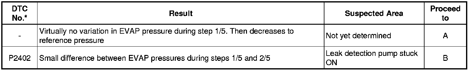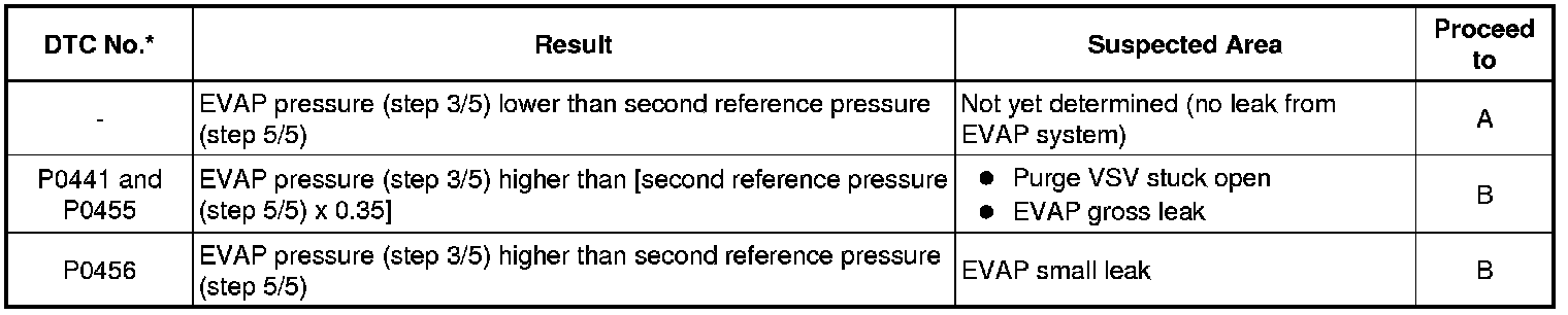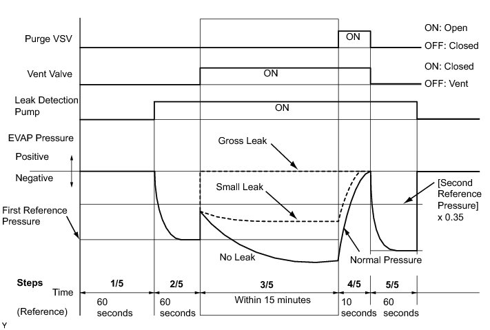 (b) Compare the EVAP pressure in step 3/5 and the second reference pressure (step 5/5).