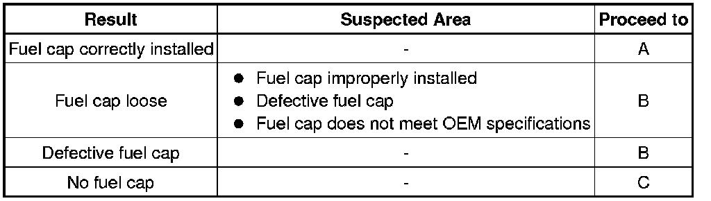 (a) Check that the fuel cap is correctly installed and confirm the fuel cap meets OEM specifications.