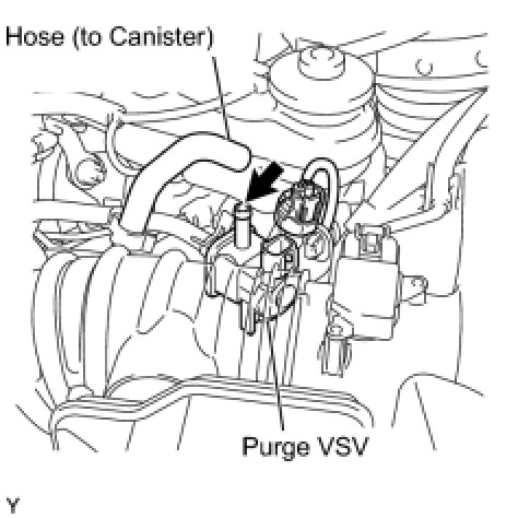 (c) Disconnect the hose (connected to the canister) from the purge VSV.