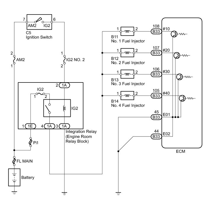 NG -- CHECK HARNESS AND CONNECTOR (FUEL INJECTOR - INTEGRATION RELAY)