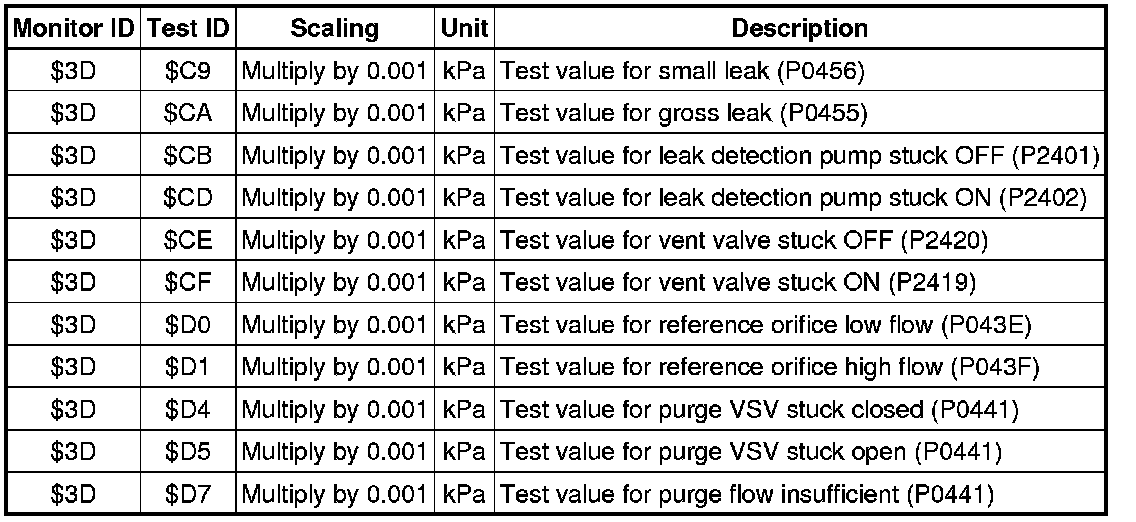 If you use a generic scan tool, multiply the value by the scaling value listed below.