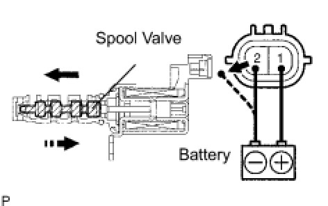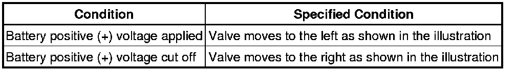 (1) Connect the positive (+) battery lead to terminal 1 and the negative (-) lead to terminal 2, and check the movement of the valve.
