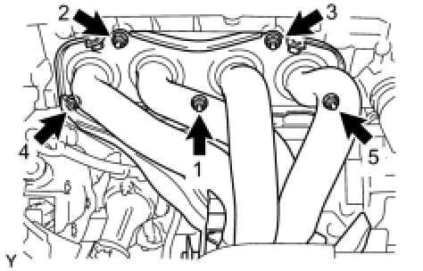 (d) Install the exhaust manifold converter subassembly, tighten the 5 nuts in the order shown in the illustration.