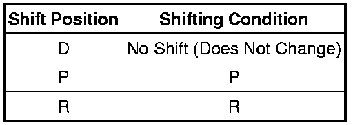 Move the shift lever to D to check whether the shifting condition changes according to the table below.