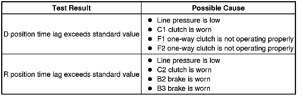 (2) Move the shift lever to D and measure the time until the shock is felt.