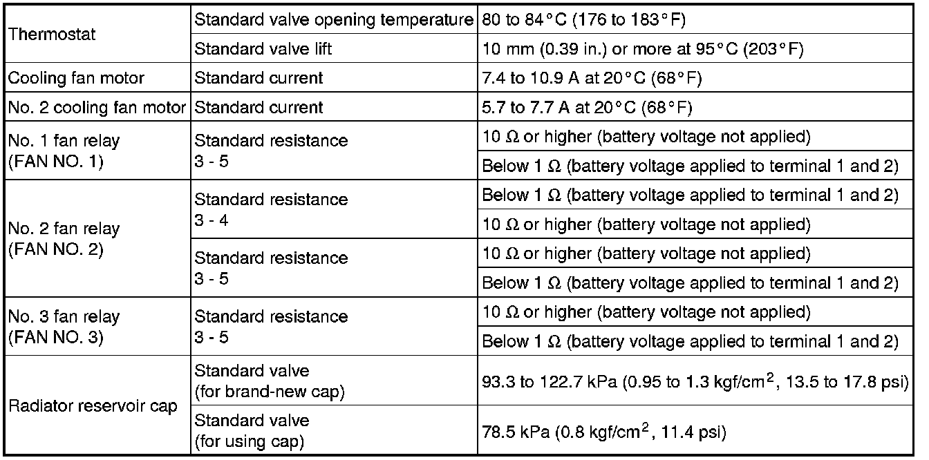 SERVICE SPECIFICATIONS: 2AZ-FE COOLING: SERVICE DATA