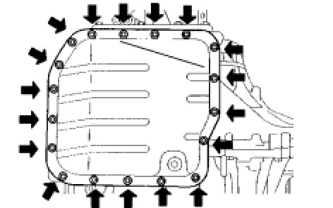 Install the automatic transaxle oil pan sub-assembly and a new oil pan gasket with the 18 bolts.