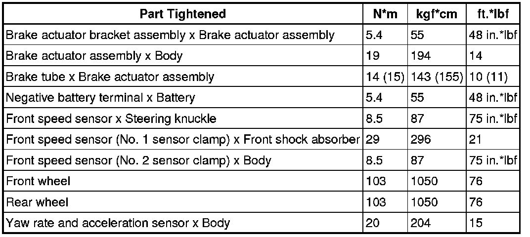 SERVICE SPECIFICATIONS: BRAKE CONTROL: TORQUE SPECIFICATIONS