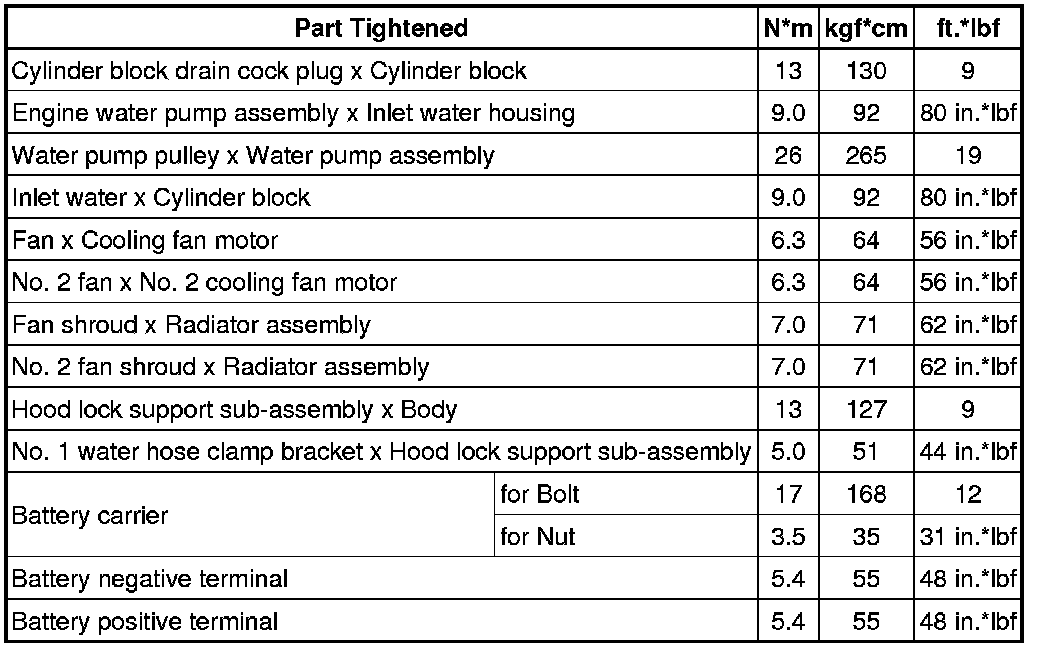 SERVICE SPECIFICATIONS: 2AZ-FE COOLING: TORQUE SPECIFICATIONS