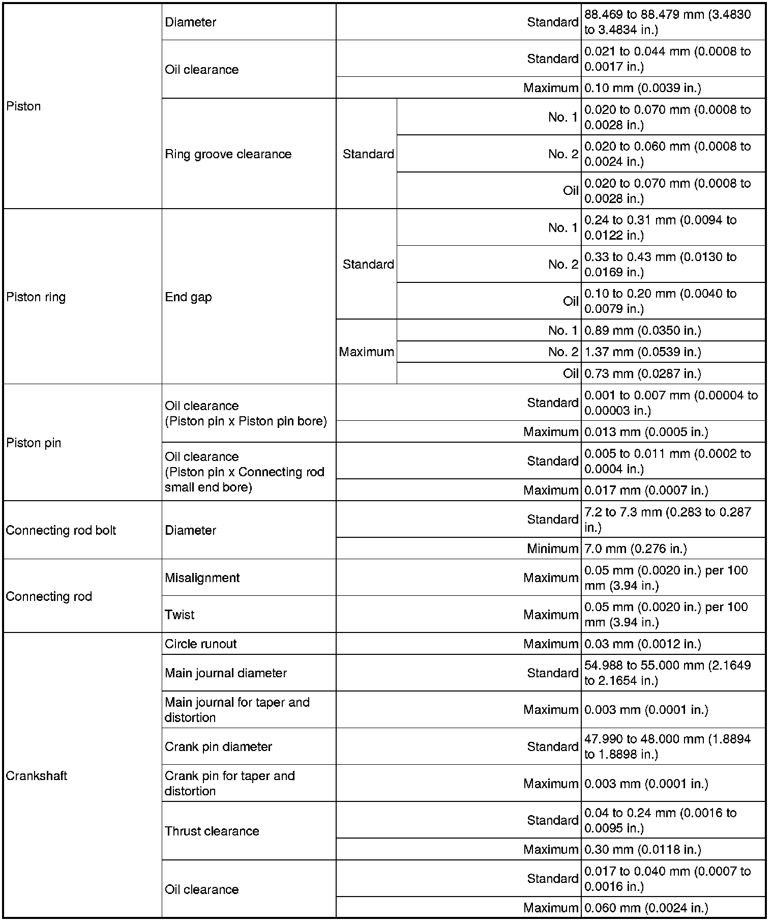 SERVICE SPECIFICATIONS: 2AZ-FE ENGINE MECHANICAL: SERVICE DATA