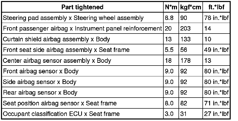 SERVICE SPECIFICATIONS: SUPPLEMENTAL RESTRAINT SYSTEM: TORQUE SPECIFICATIONS