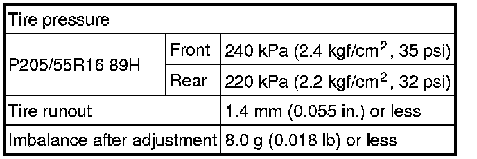 SERVICE SPECIFICATIONS: TIRE AND WHEEL: SERVICE DATA