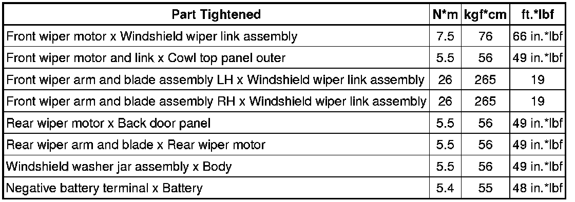 SERVICE SPECIFICATIONS: WIPER AND WASHER: TORQUE SPECIFICATIONS