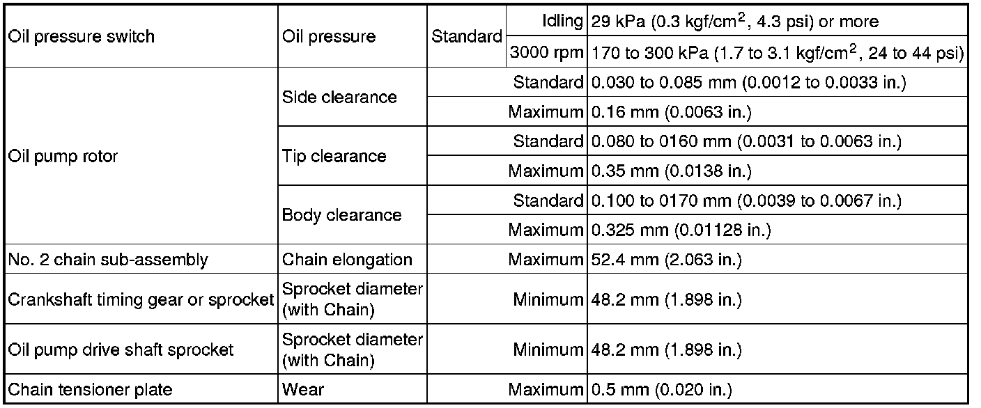 SERVICE SPECIFICATIONS: 2AZ-FE LUBRICATION: SERVICE DATA