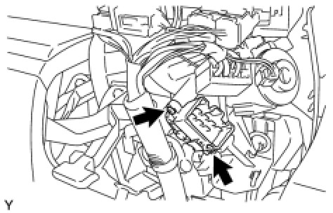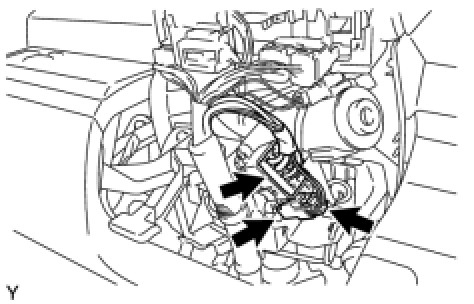 (a) Disconnect the 2 connectors and remove the wire harness clamp.