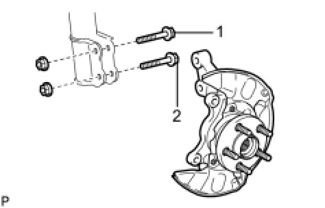 (b) Remove the 2 nuts on the lower side of the front shock absorber.