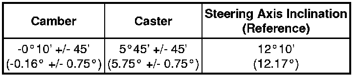 * The tolerance for the difference between the left and right wheels is 0°45' (0.75°) or less for both the camber and caster.