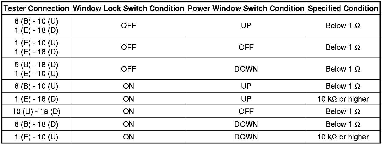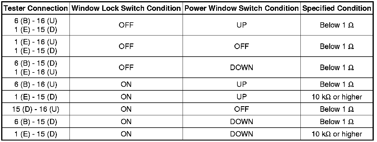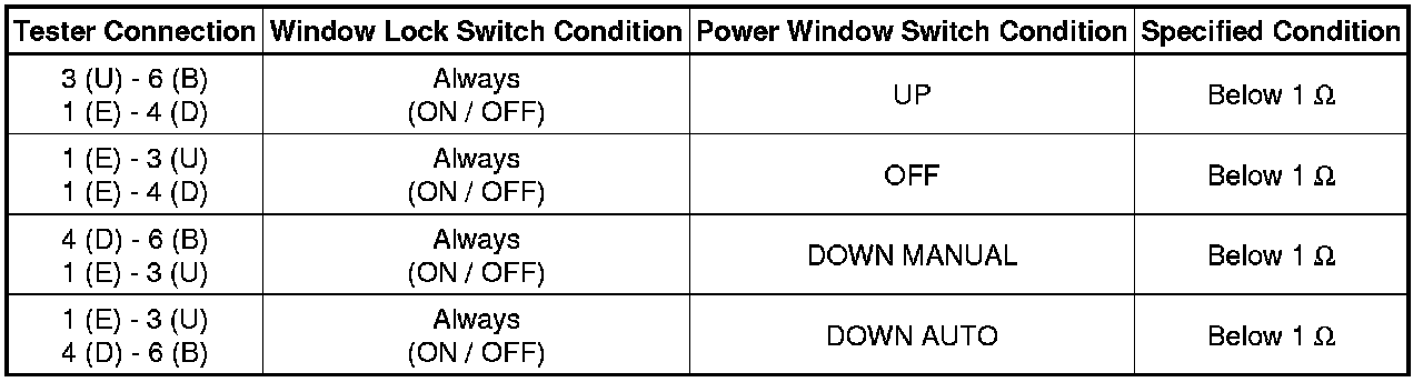 WINDSHIELD / WINDOWGLASS: POWER WINDOW MASTER SWITCH: INSPECTION