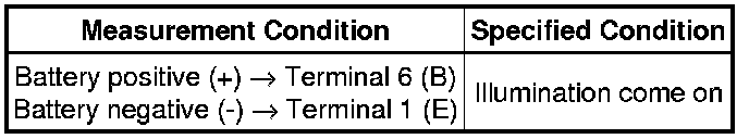 (1) Apply battery voltage to the power window master switch and check that the illumination comes on.