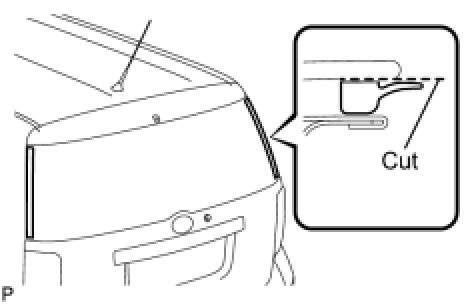 (a) Using a knife, cut off the back window outside moulding, as shown in the illustration.