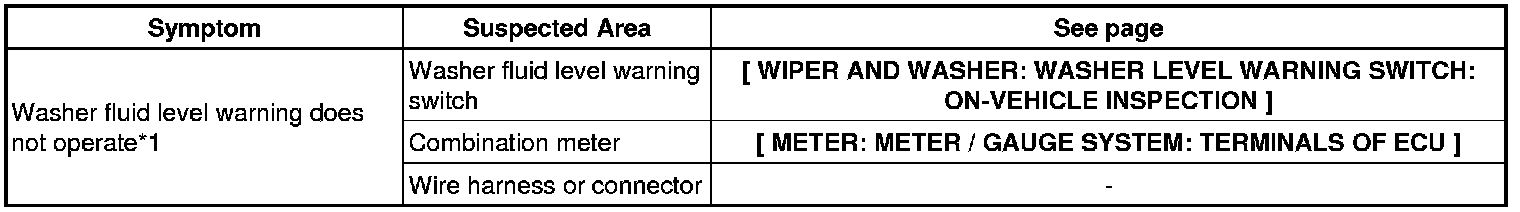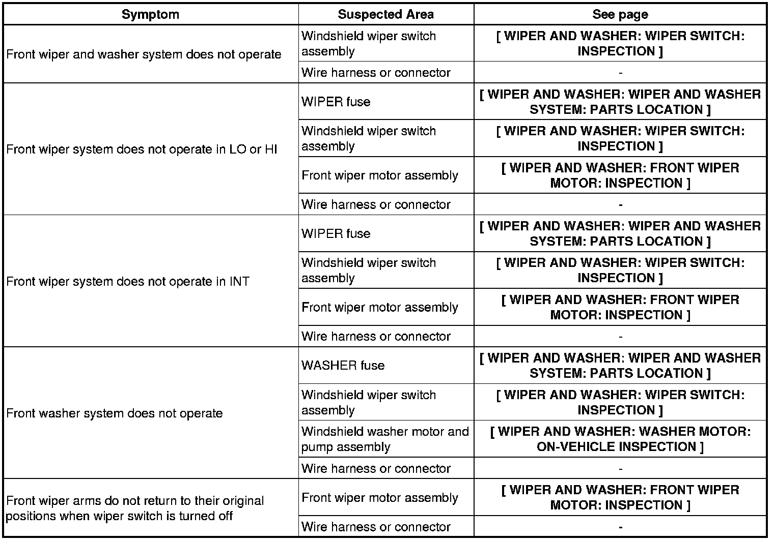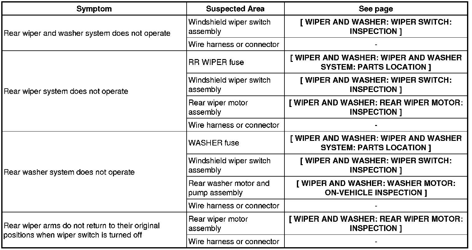 WIPER AND WASHER: WIPER AND WASHER SYSTEM: PROBLEM SYMPTOMS TABLE