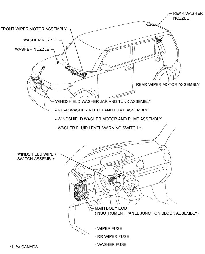WIPER AND WASHER: WIPER AND WASHER SYSTEM: PARTS LOCATION