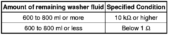 If the result is not as specified, replace the washer level warning switch.