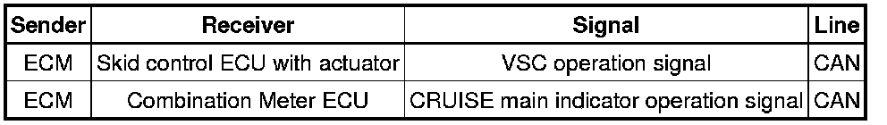 * The ECM illuminates the combination meter's CRUISE main indicator light when it receives a cruise control main switch ON signal.