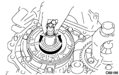 (a) Hold the rear planetary sun gear, turn the one-way clutch and check that the one-way clutch turns freely counterclockwise and locks when turned clockwise.