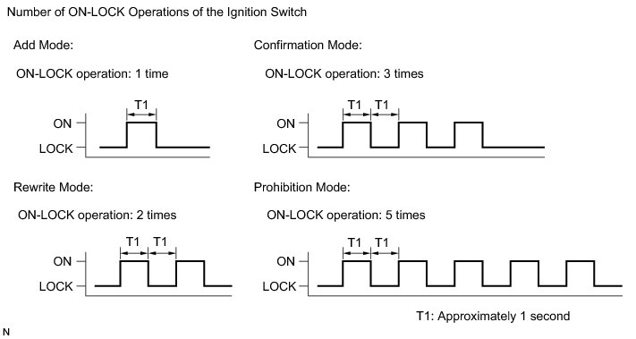 (4) Turn the ignition switch from LOCK to ON and back to LOCK at approximately 1-second intervals 1 to 5 times to select a mode (see the illustration). Then remove the key from the ignition key cylinder.